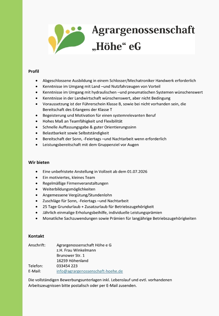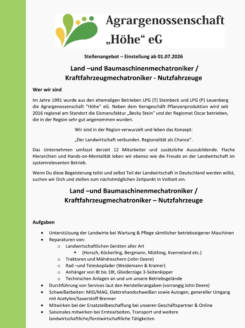 Wir stehen jederzeit für Fragen zur Verfügung und bedanken uns bei allen Menschen die der heutigen Landwirtschaft vertrauen. Für mehr Informationen zu unserem Unternehmen, E-Mail an web.support@agrargenossenschaft-hoehe.de oder besuchen Sie uns auf einen unserer Tag der Offenen Türen oder spontan an unserer Eismanufaktur ``Becky Stein´´.